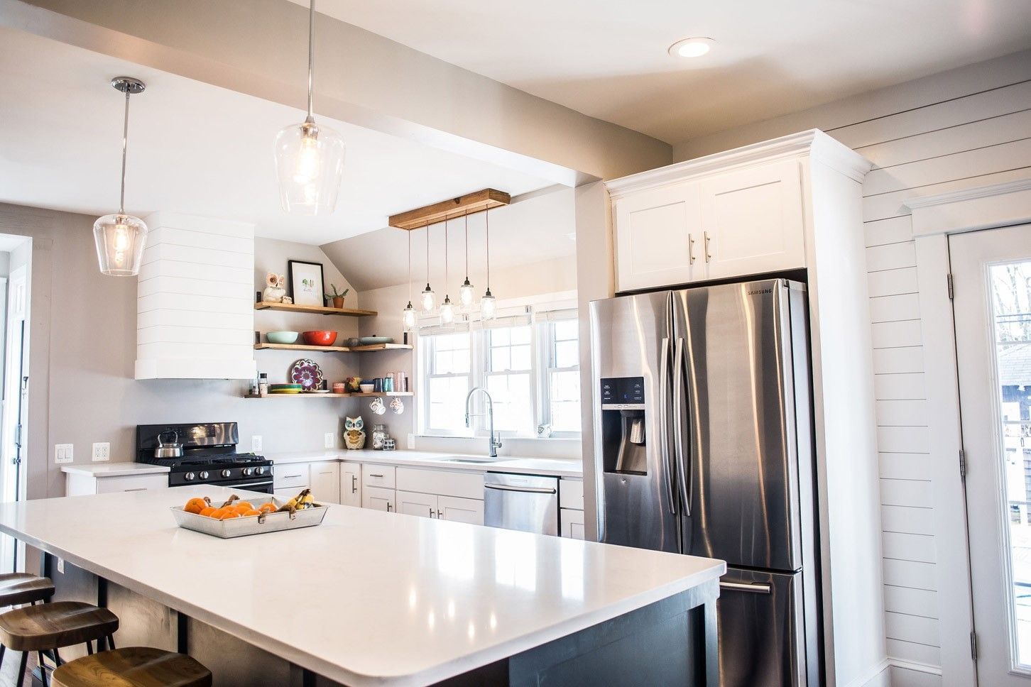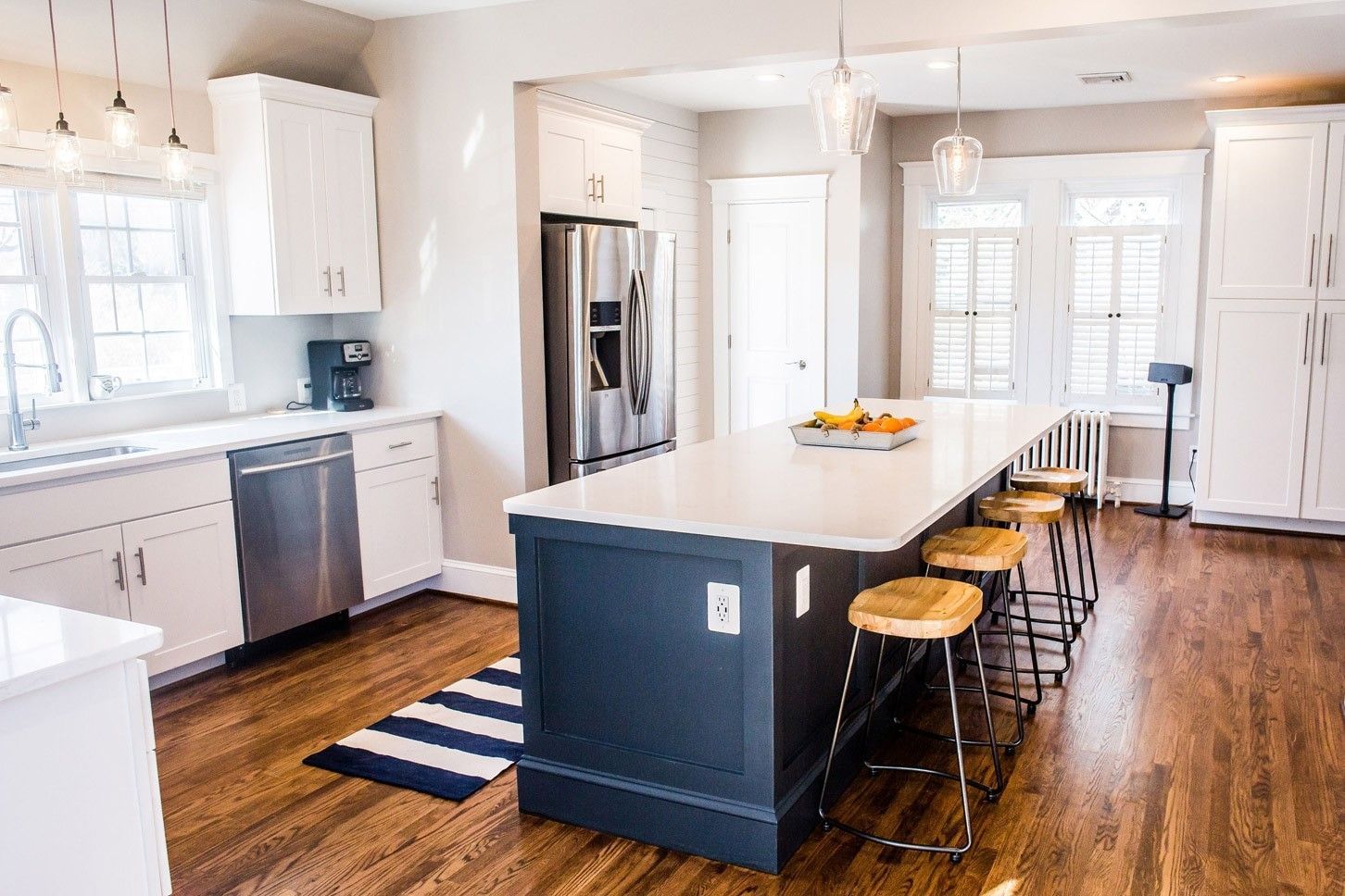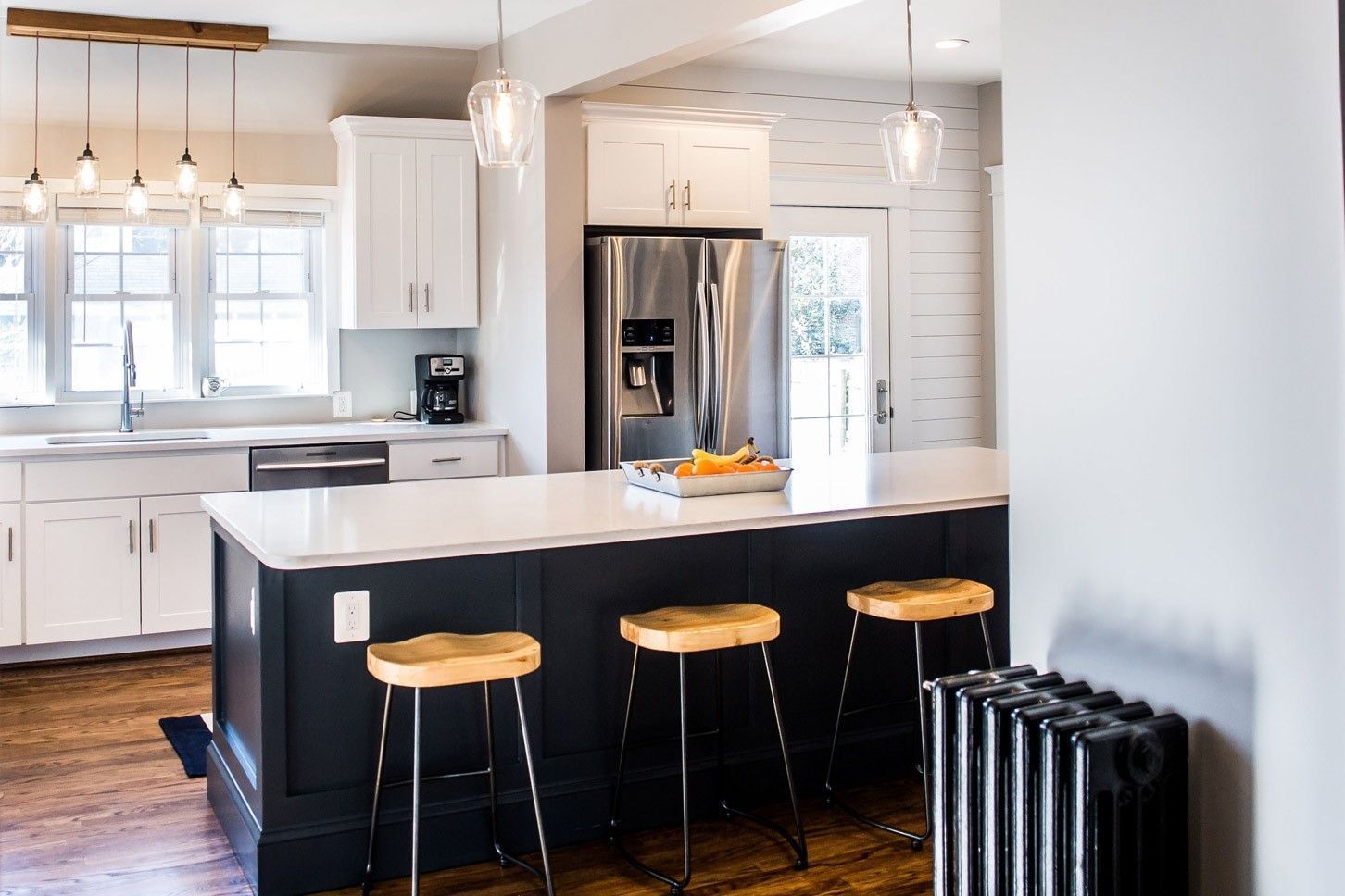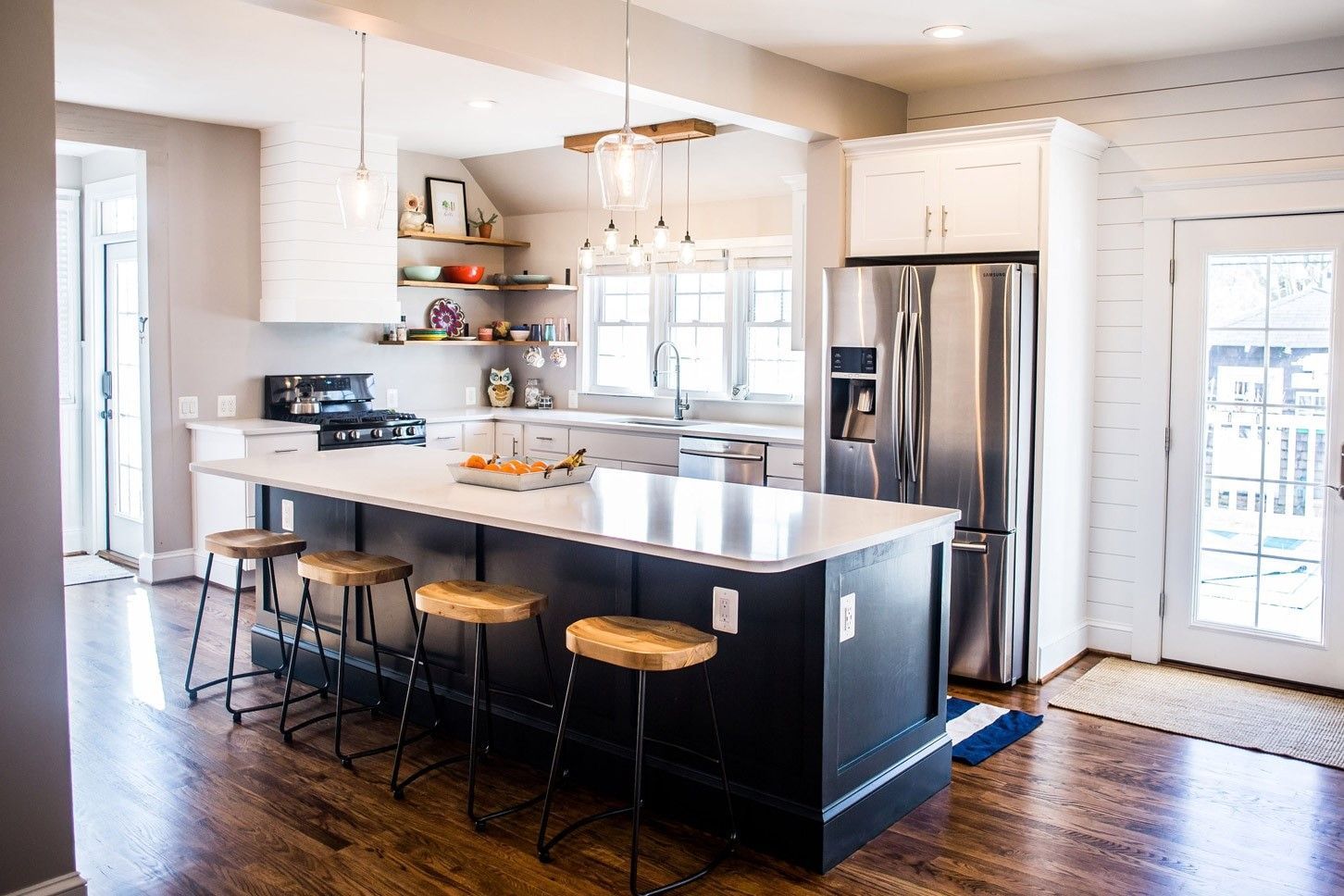 By the time the clients for this project reached out to Hiser + Kopits Hiser Architects, they had already begun taking apart the kitchen, living and dining rooms themselves.They wanted to expand their kitchen into the dining room, and to open up the first floor to the extent possible, but they weren’t sure how best to do that. Once the layout was solved, they dived back in, choosing the cabinets, countertops, and some other elements themselves.